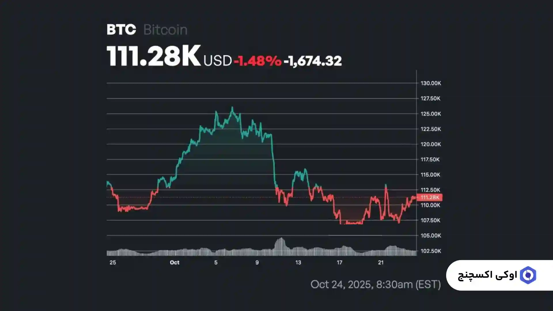 ارز دیجیتال بیت کوین (bitcoin) در حال حاضر با قیمت ۱۱۱,۲۸۰ دلار معامله میشود و در نتیجه افزایش فشار فروش و تضعیف جریان های نهادی، افت قیمت 1.۴۸ درصدی ماهانه را تجربه کرده است.