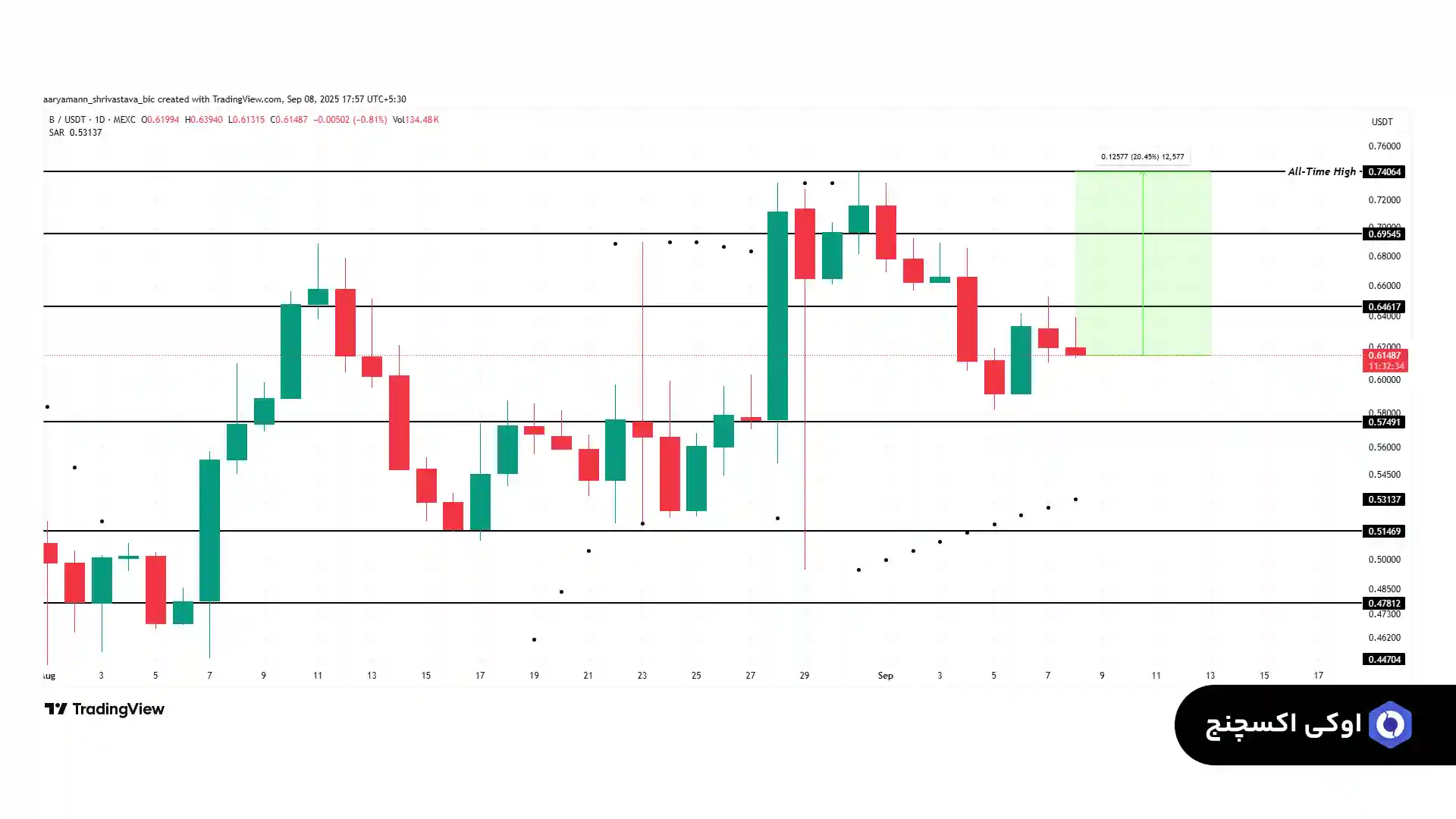 اگر قیمت ارز B، سطح ۰.۶۴۶ دلار را به عنوان یک سطح حمایتی حفظ کند، می تواند تا ۰.۶۹۵ دلار صعود و در نهایت از ۰.۷۴۰ دلار عبور کند. در این صورت احتمالا یک نقطه عطف صعودی جدید برای سرمایه گذاران ایجاد شود.