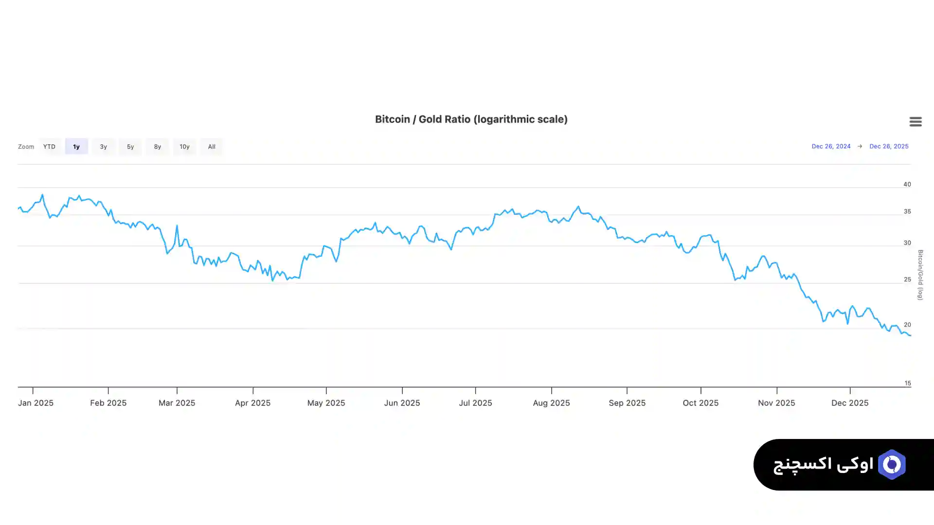 در زمان انتشار این گزارش، نسبت بیت کوین به طلا حدود ۱۹.۲۹ بوده که نشان دهنده تغییر موقتی توازن بین این دو دارایی است.