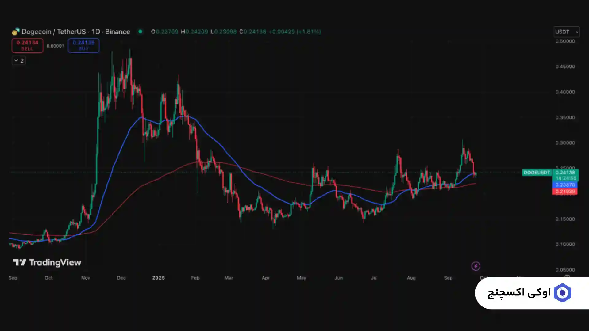 دوج کوین (DOGE) در محدوده بین ۰.۲۳۶ تا ۰.۲۴۴ دلار معامله شد و علیرغم روند نزولی گسترده بازار ارزهای دیجیتال، مقاومت خود را نشان داد. در رشد اولیه، قیمت دوج کوین (dogecoin) مقاومت ۰.۲۴۴ دلار را آزمایش کرد، اما فروش برای برداشت سود روند صعودی را متوقف کرد.