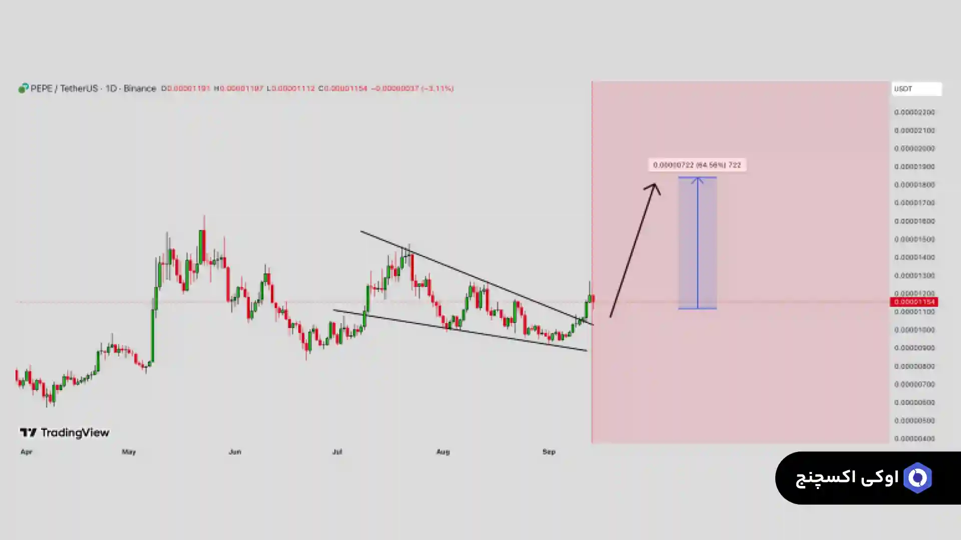 از نظر یک تحلیلگر ارزهای دیجیتال ، تشکیل الگوی کنج نزولی مهم بوده و نشان دهنده یک تغییر صعودی برای قیمت PEPE است. این الگو معمولا نشان دهنده تضعیف فروشندگان است و باعث افزایش تقاضا می شوند که افزایش قیمت را نیز به همراه دارد.
