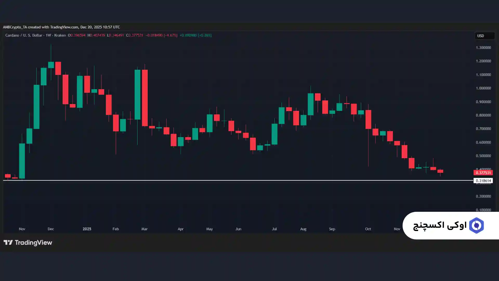 برای مقایسه، حتی دوج کوین (DOGE) هم توانسته افت خود را تا ۵۰ درصد محدود کند. به بیان ساده، عملکرد ADA حتی از یک میم کوین (memecoin) هم ضعیف تر بوده است.