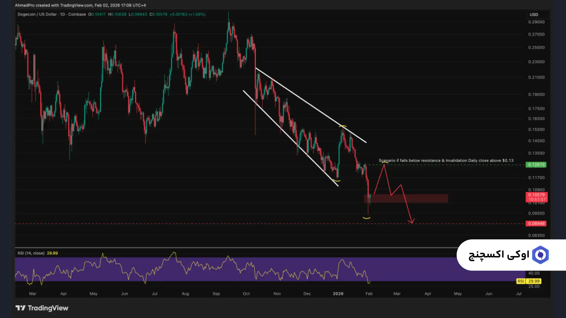 DOGE نزولی، بریک‌اوت مقاومت لازم دارد ۰.۱۳ / ۰.۰۹ دلار