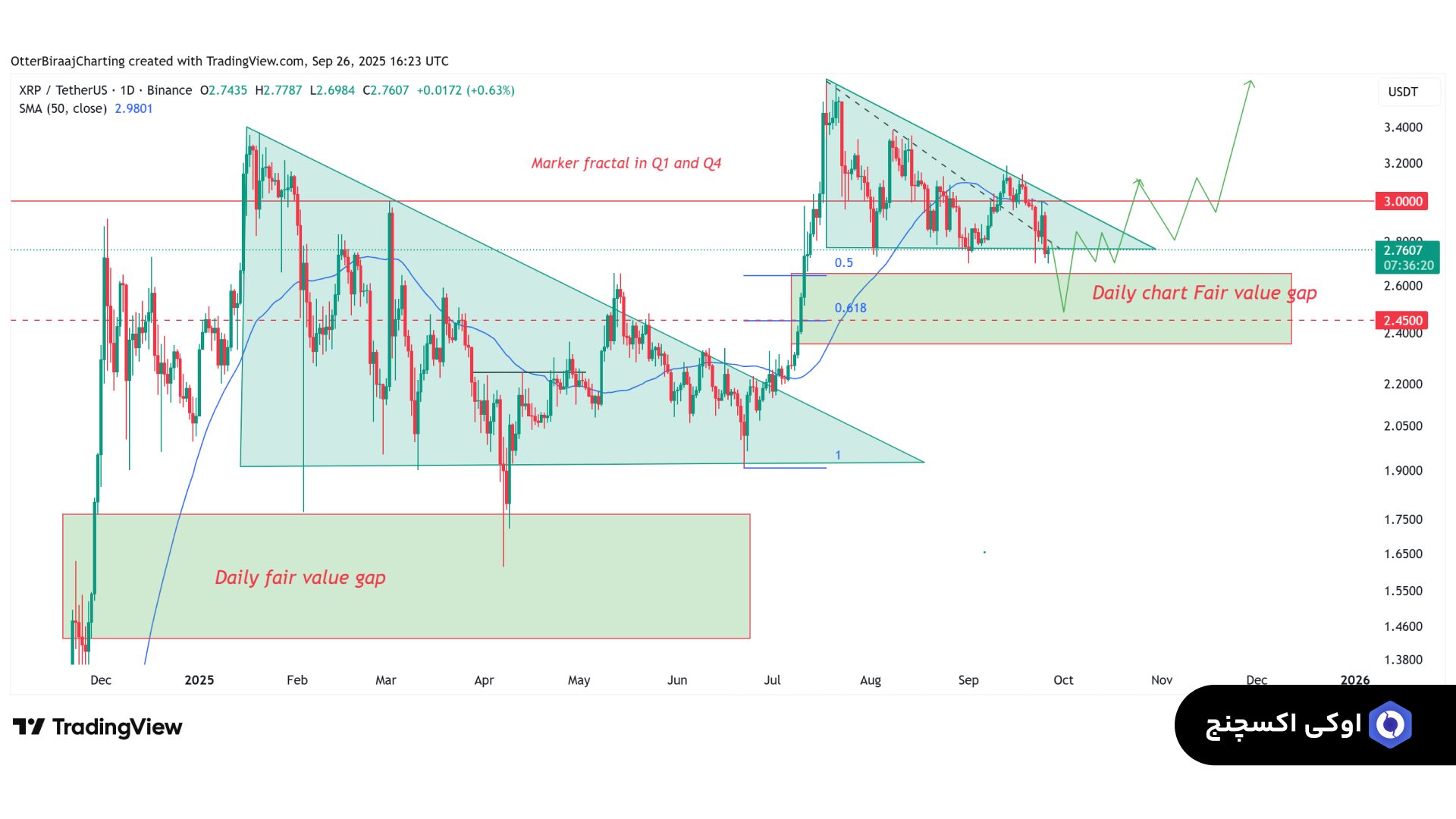 ارز دیجیتال ریپل (XRP) در محدوده حساس ۲.۷۵ دلار قرار دارد و نوسانات اخیر نشان میدهد که احتمال افت تا ۲.۵۰ دلار وجود دارد، هرچند داده های درون زنجیره ای از حمایت قوی خریداران خبر می دهند. تحلیلگران معتقدند که شکست سطوح ۲.۹۰ و سپس ۳.۳۳ دلار می تواند سطحی برای شروع روند صعودی تا اهداف ۴.۱۷ تا ۵.۸۵ دلار باشد.